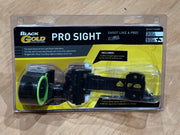 The Black Gold Pro features 1st, 2nd, and 3rdaxis adjustment, with 1st and 3rd being micro adjustable. Like all Black Gold bow sights, the Pro features ultra-bright Sky Coil technology. The fiber optics are coiled in a housing on the top of the sight where light is most available. The result is the brightest pins on the market. Additionally, after sunrise, our patented Photochromatic shell automatically darkens, blocking UV light from reaching the fiber and preventing the pins from getting too bright during midday.